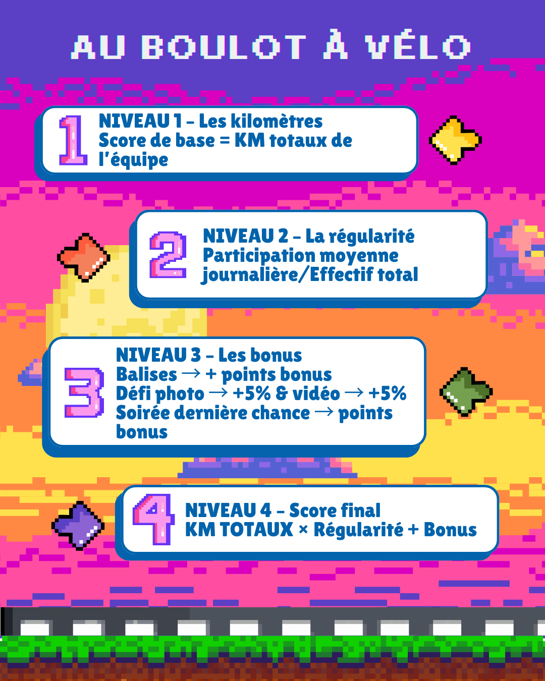 → Permet de convaincre de nouvelles personnes d’essayer le vélo sur leur trajet domicile – travail, sur un temps donné, avec une météo favorable à l’expérimentation, tout cela dans une dynamique collective et ludique